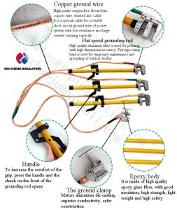 Grounding rod with clamp and copper wire equipment was made from fiberglass sticks ,phase line ,earthing lead line and grounding clamp (grounding needle ) .lt was It is widely used in the temporary grounding of industrial and mining power industrial equipment.