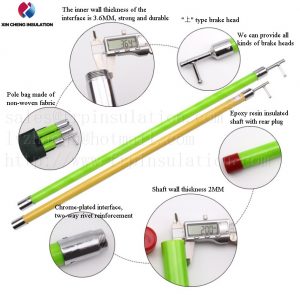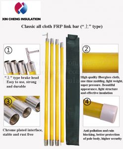 Manufacturing technology of high-pressure operating rod This series of operating rods (also known as Link rod) are made of glass fiber cloth, epoxy resin and 306 resin phthalic anhydride, glass fiber cloth and curing agent, and are extruded by drawing machine, forming at one time. Then it is painted and made into other FRP products with beautiful appearance, light structure, easy operation, mechanical and electrical properties, suitable for use under various high voltage conditions, good insulation performance and safe use. The detection period is one year. Inspection basis of high-voltage operating pole: DL408-91 “Electrical Safety Work Regulations” appearance inspection: smooth insulation surface, no bubbles, wrinkles or cracks; good bonding between glass fiber and resin; hollow pipe end with plugs, strong connection between the knuckles and poles.
