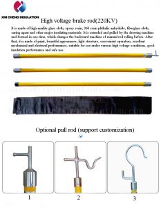 Composition of high-pressure operating rod: Connecting type: FRP epoxy resin rod, branded connecting rod, rivet, etc. Connection rain-proof type: FRP epoxy resin rod, branded connection button, rivet, insulator